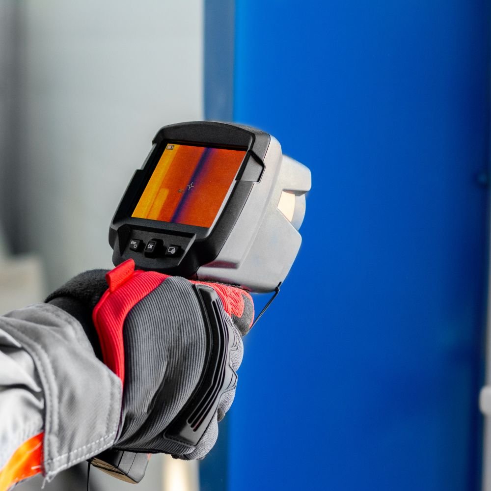 Badanie kamerą termowizyjną w celu wykrycia mostków cieplnych, nieszczelności stolarki, problemów z izolacją oraz nieprawidłowości ogrzewania (w tym podłogowego).